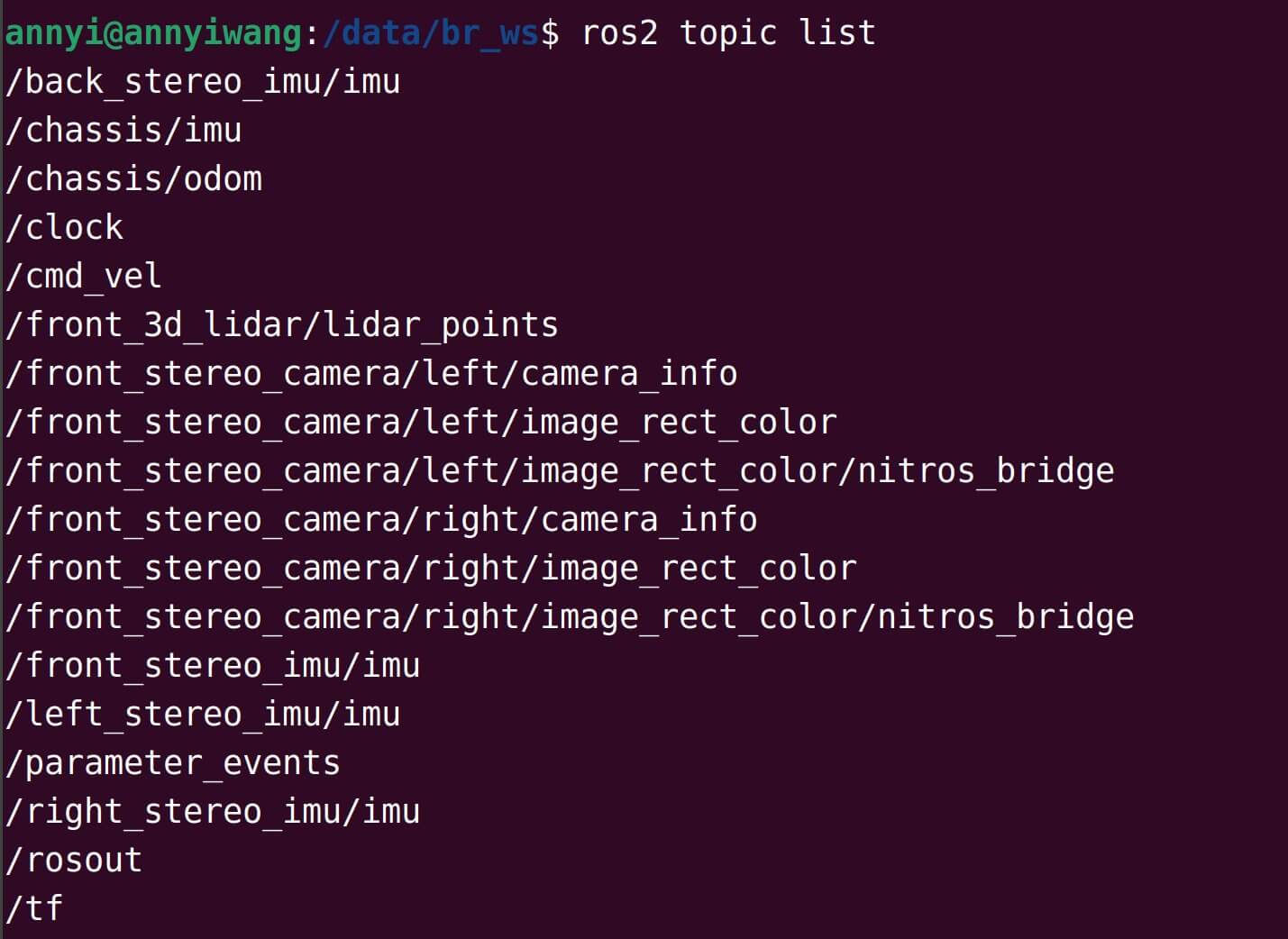 该命令启动 VSLAM 算法节点,自动订阅来自 Isaac Sim 的相机传感器数据和 TF 坐标变换信息,进行视觉里程计算与地图构建,并发布包括 odometry 里程计信息、点云地图等在内的定位与感知信息供后续模块使用。