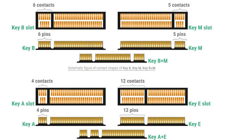 Key B+M gold fingers can use key B or key M adapter slots, key A+E gold fingers can use key A or key E adapter slots. For other types of gold finger boards, please strictly select the corresponding type of adapter slot according to the interface.