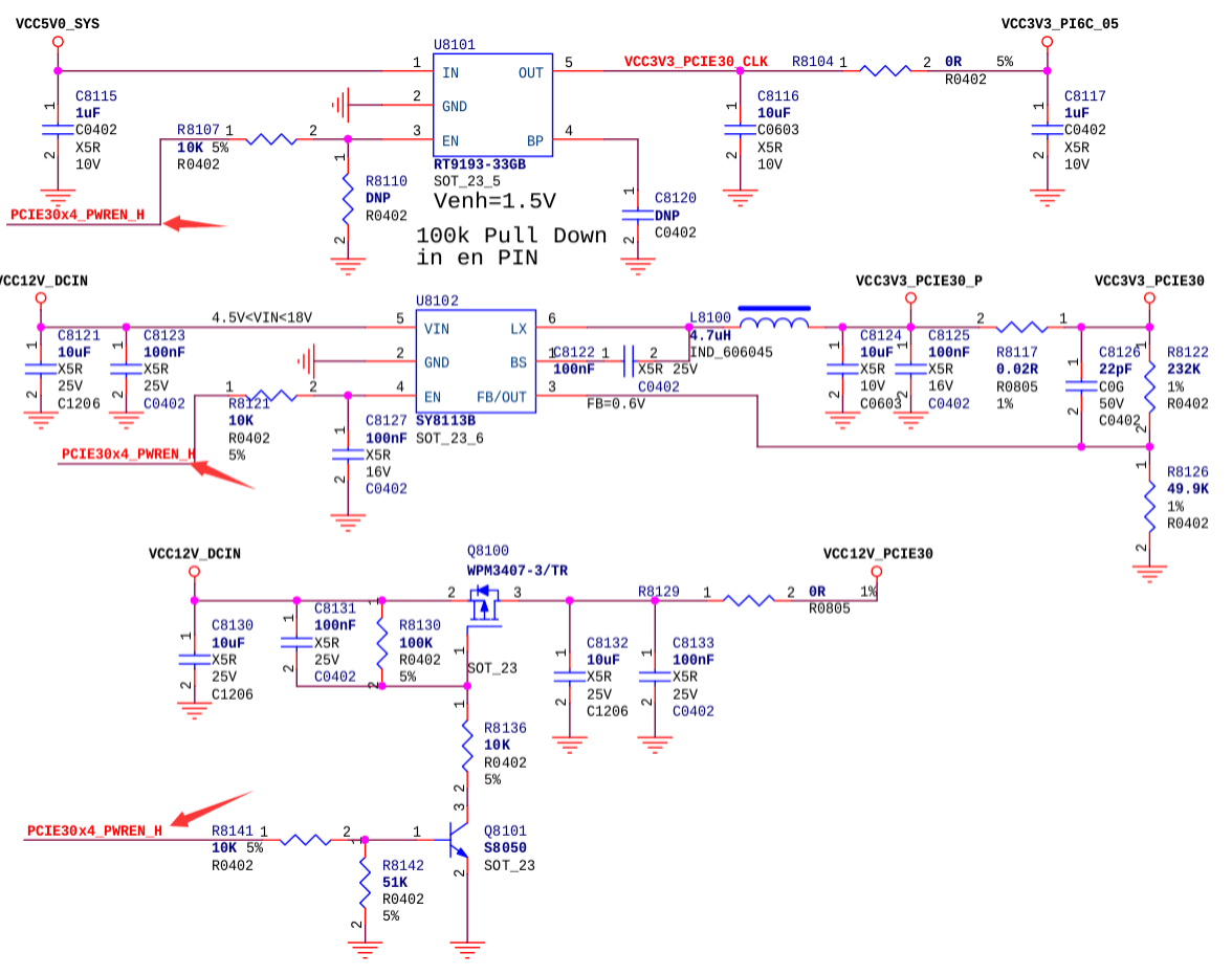 - Controller: As RC, may need to configure "vpcie3v3-supply", corresponding to the fixed regulator controlled by the "PWREN" gpio signal of PCIe.