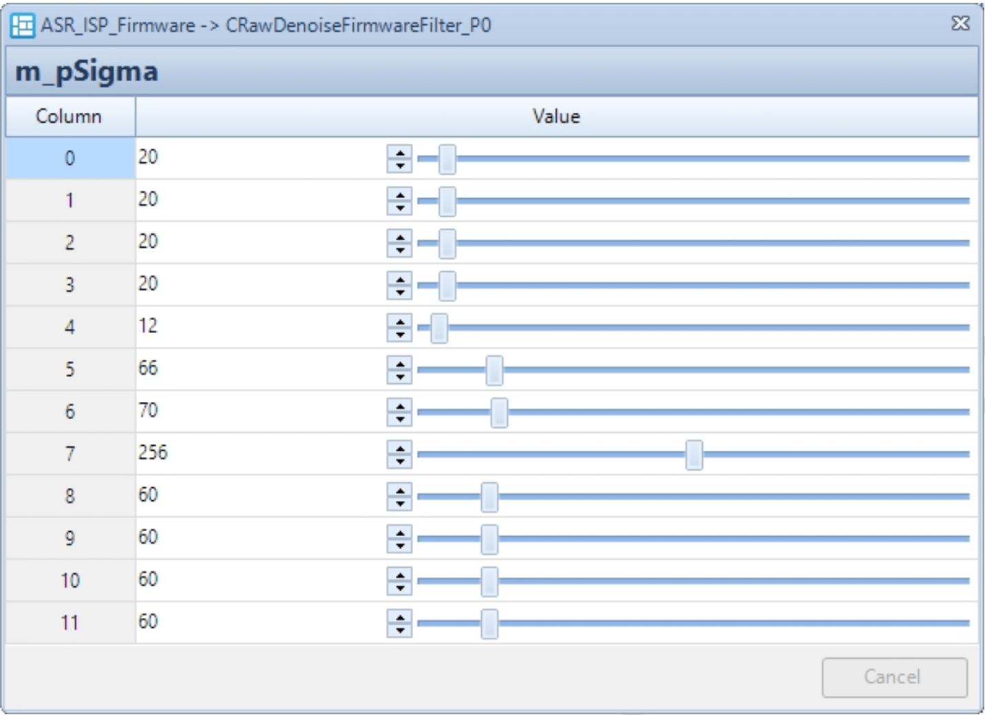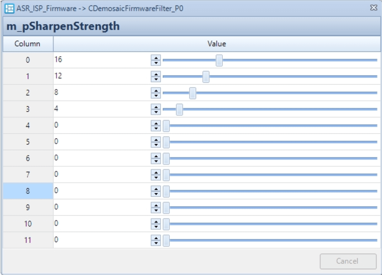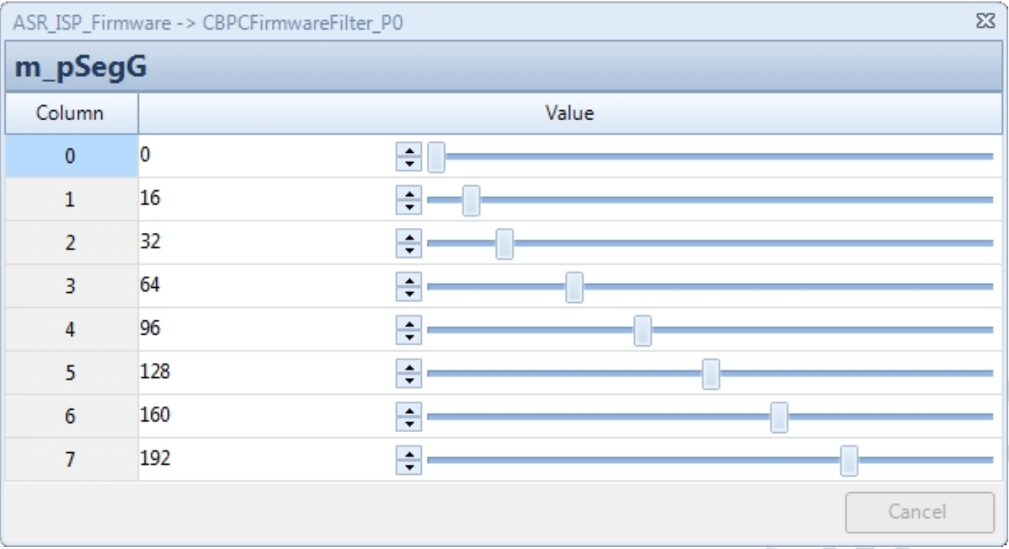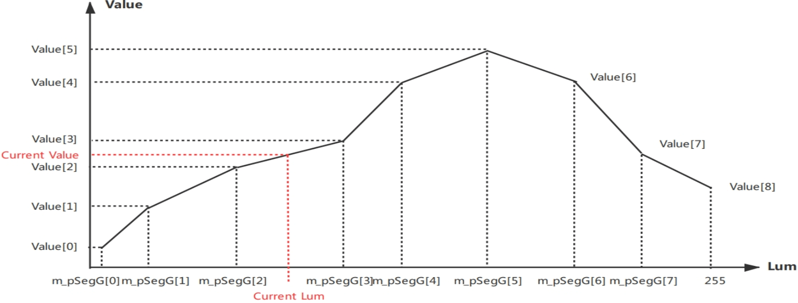 | m_pL3 | 对应45%亮度下的去噪强度伸缩系数, Q5精度, 值越大, 该亮度下去噪强度越强 | 是 | 可随Gain变化 |