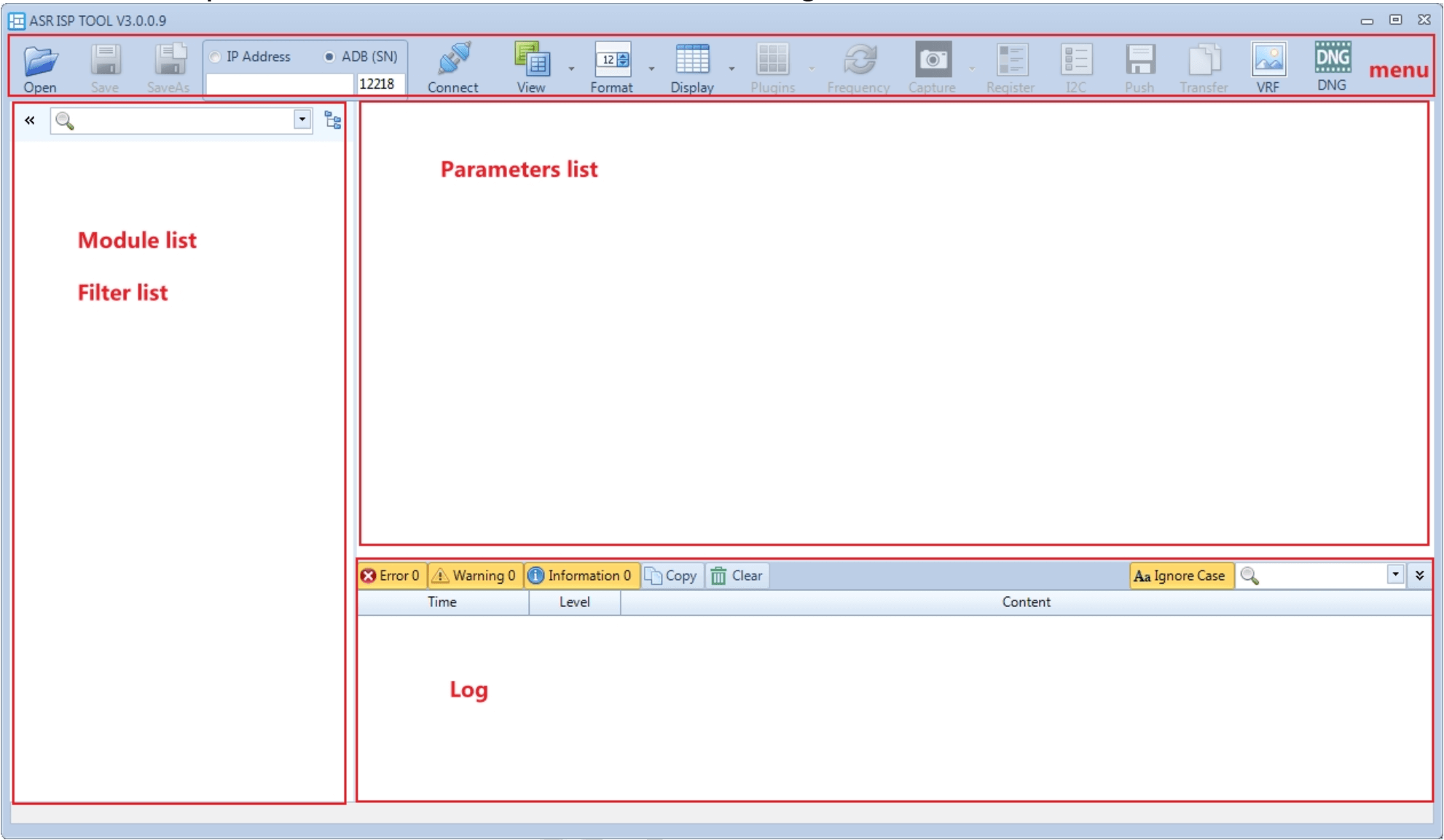 双击 AsrIspTool.exe ,启动调试工具,主界面如 Figure 3.1-1 所示