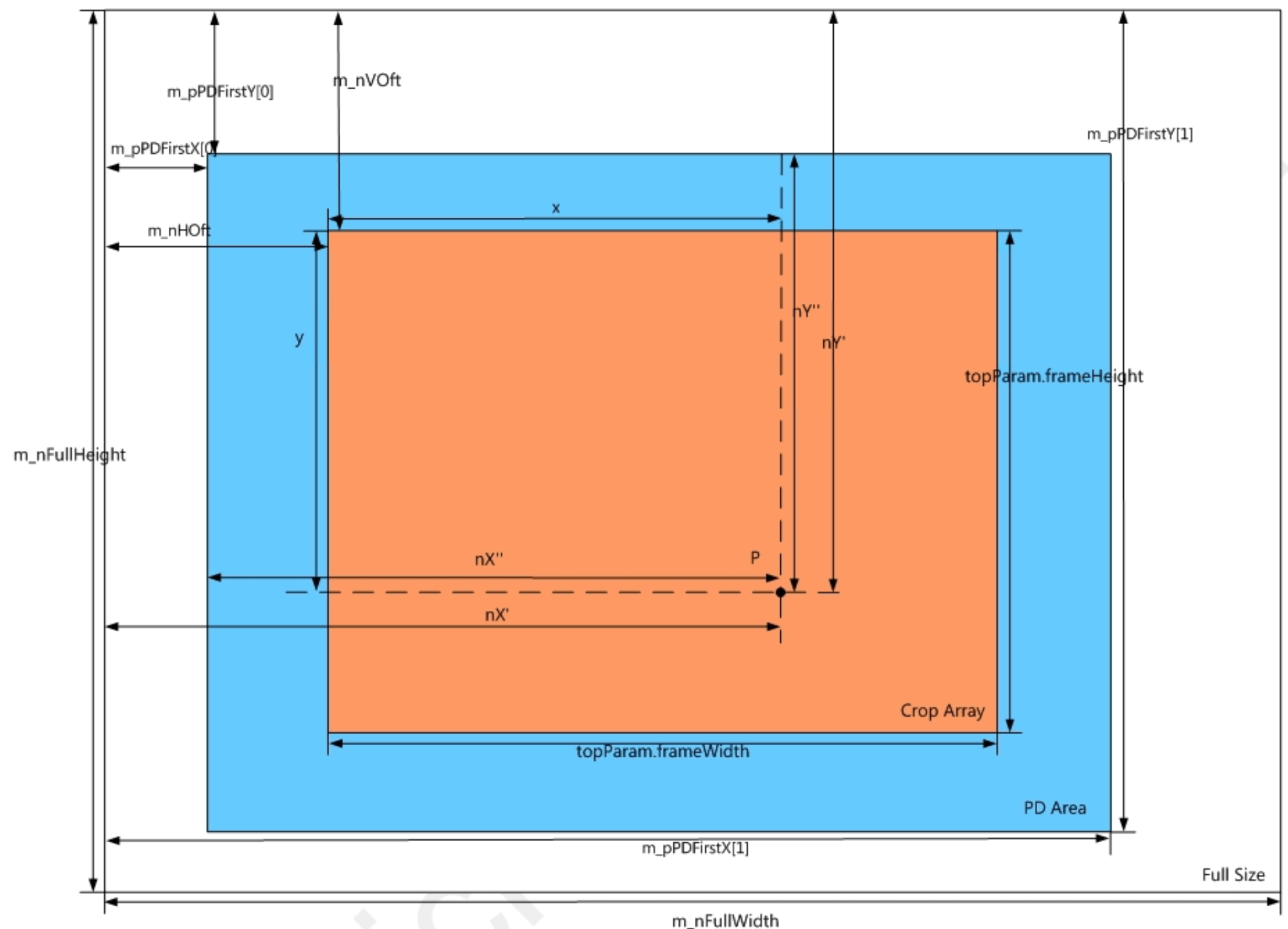 | m_pPDFirstY | 垂直方向PD区域相对于sensor输出图像高度的偏移量(见窗口示意图) | 是 | |