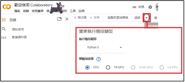 开启 Colab 云端运算平台,并选用 GPU 作为处理核心。