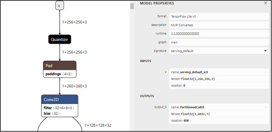 输出 AI 模型 将 Pytorch 模块转换成 Tensorflow Lite 的形式。