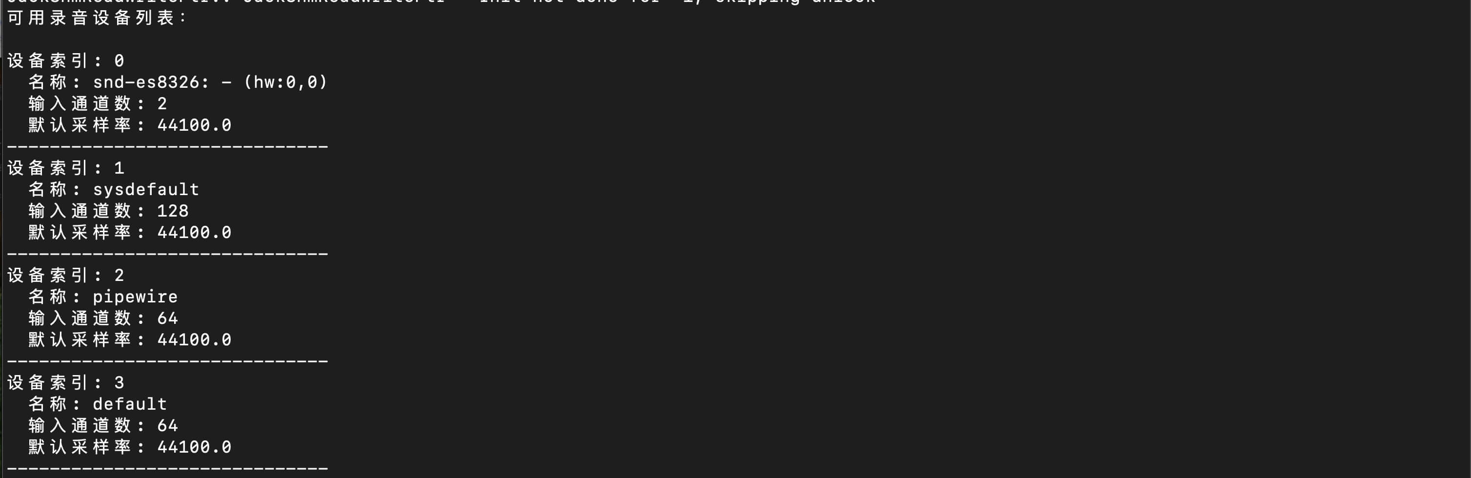 本节介绍如何使用语音活动检测(Voice Activity Detection, VAD )模型,实现对人声的自动检测并控制录音行为。系统将在检测到语音时启动录音,在检测到静音时自动停止。