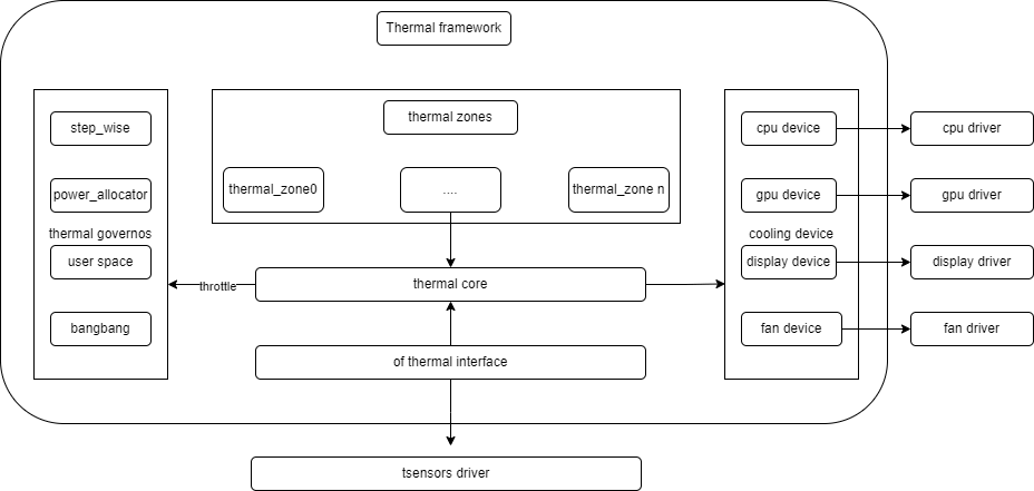 thermal特指一套关于温控机制的驱动框架,Linux thermal框架是Linux系统下温度控制的一套架构,主要用来解决随着设备性能的不断增强而引起的日益严重的发热问题