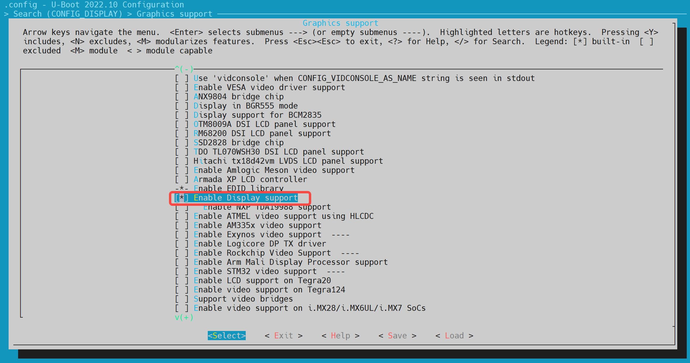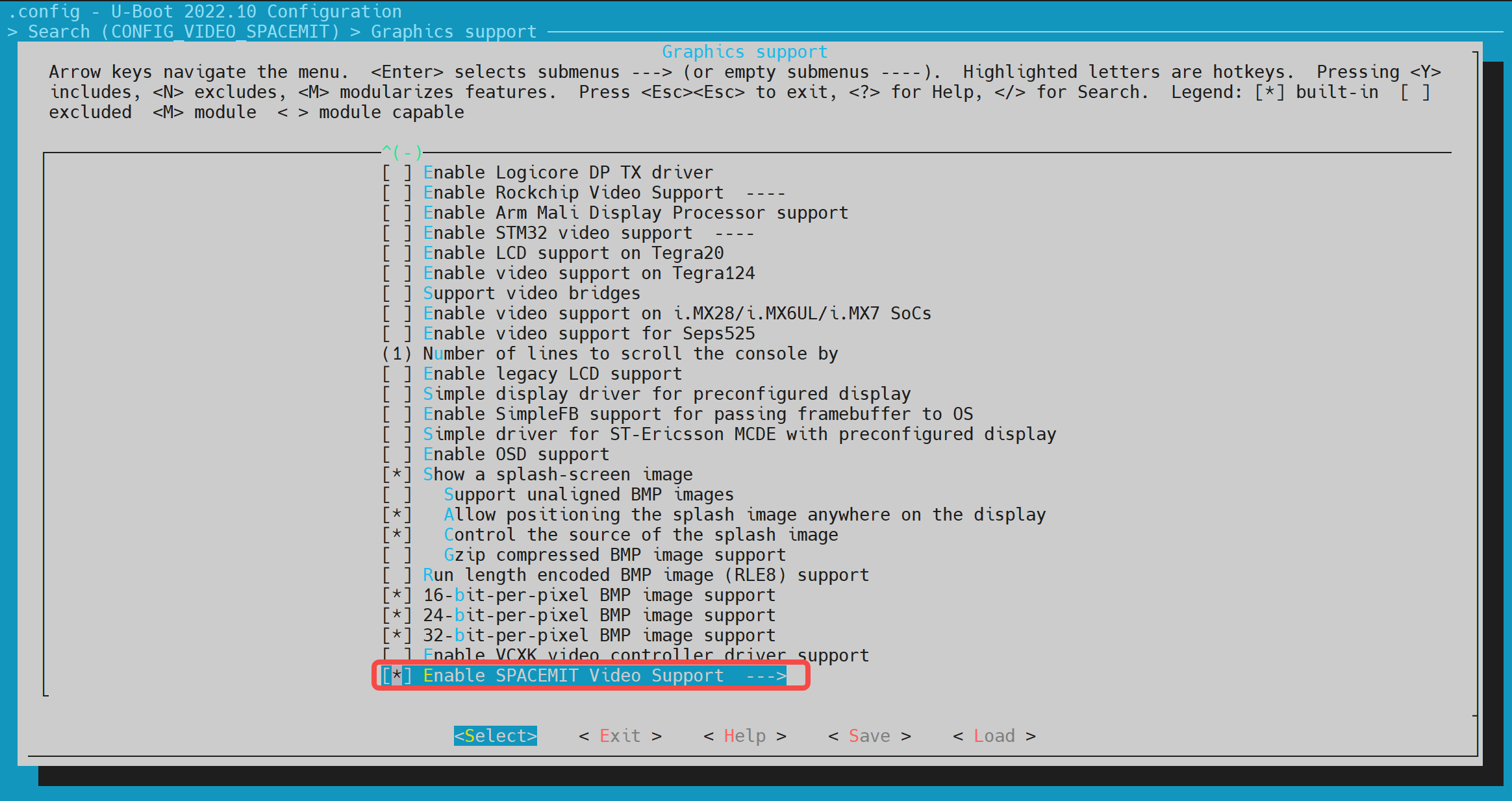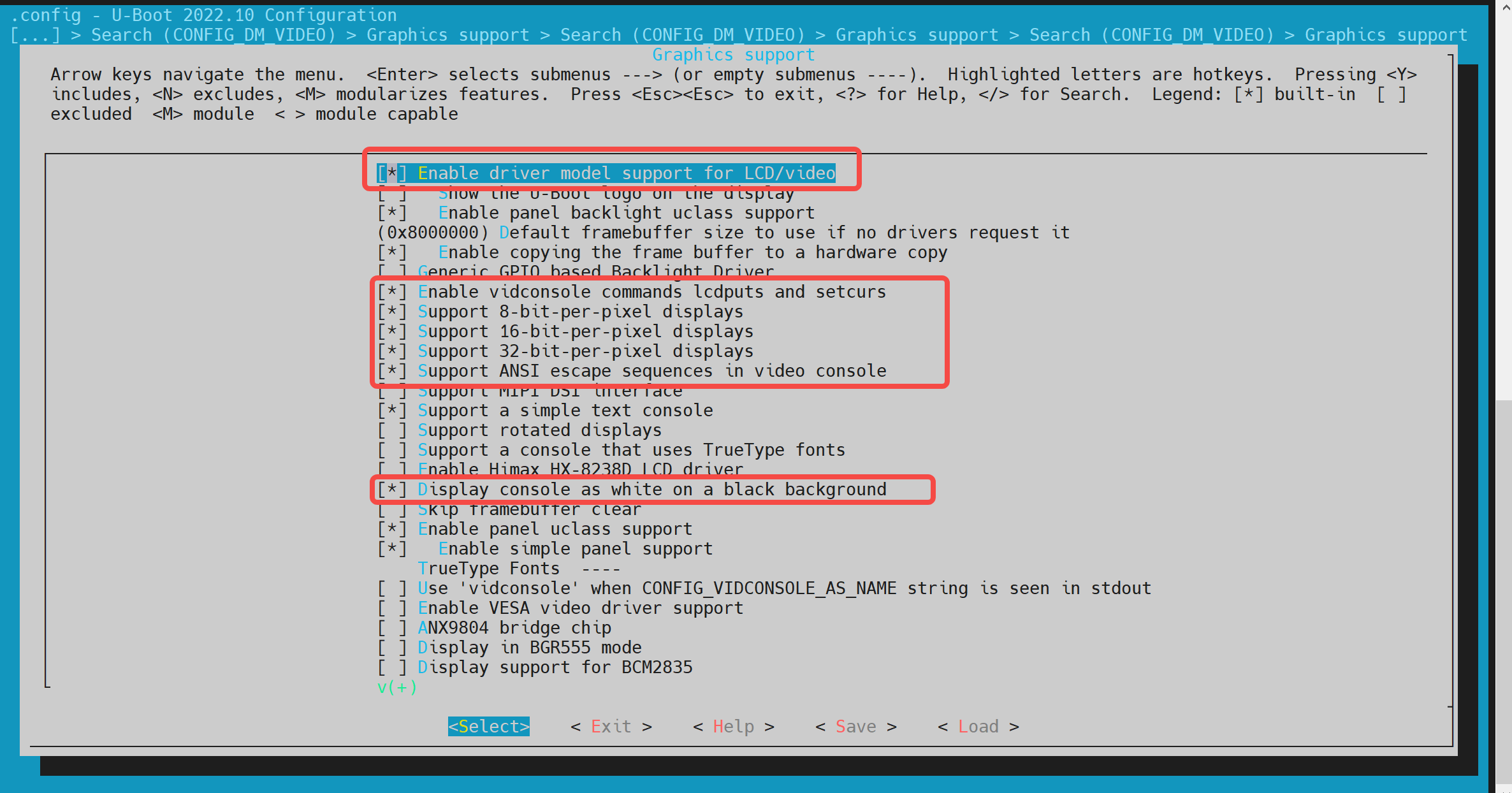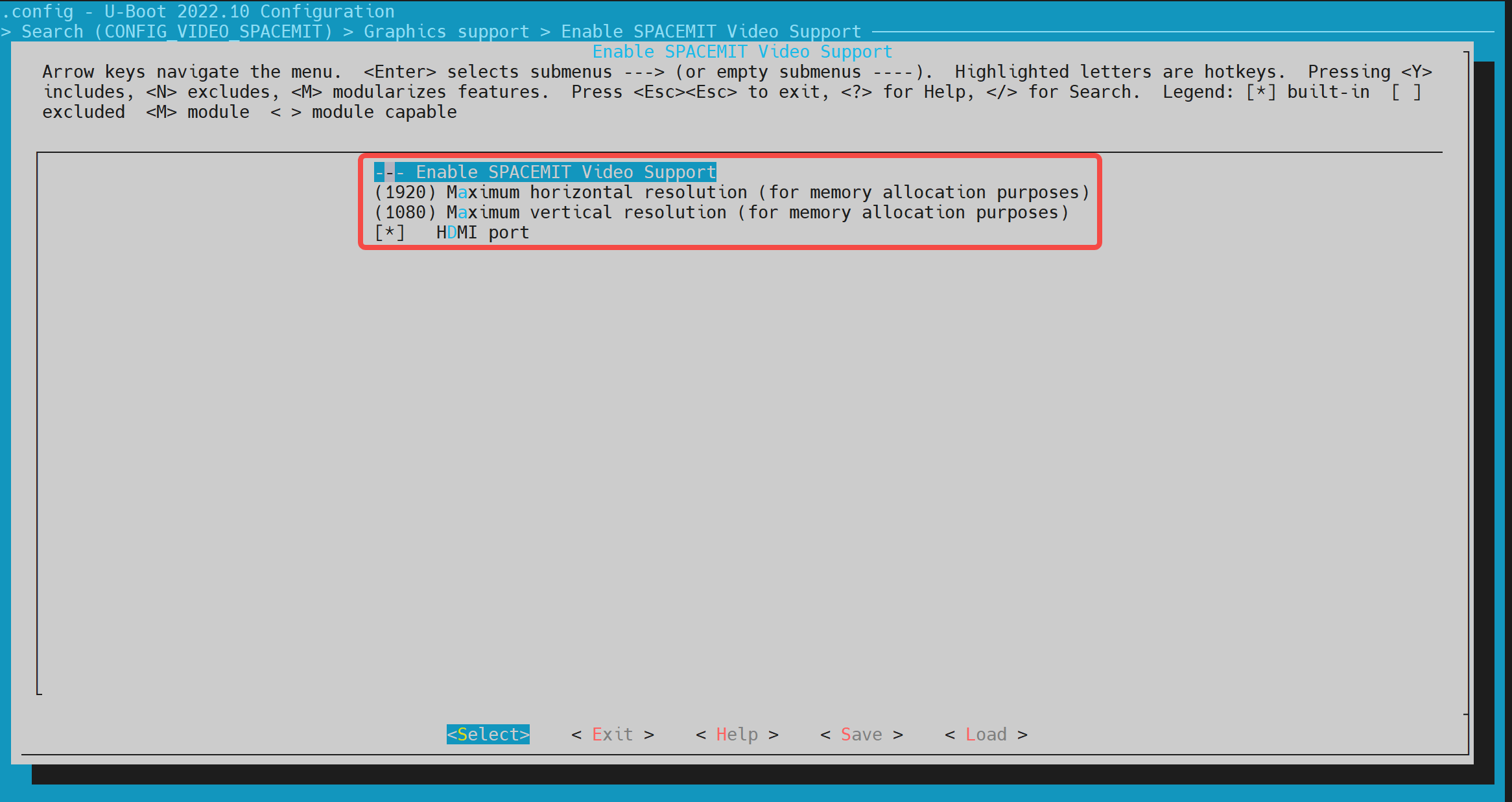 通过键盘"Y"/"N"以开启/关闭相关的功能配置。保存后会更新到 uboot 根目录的.config 文件。