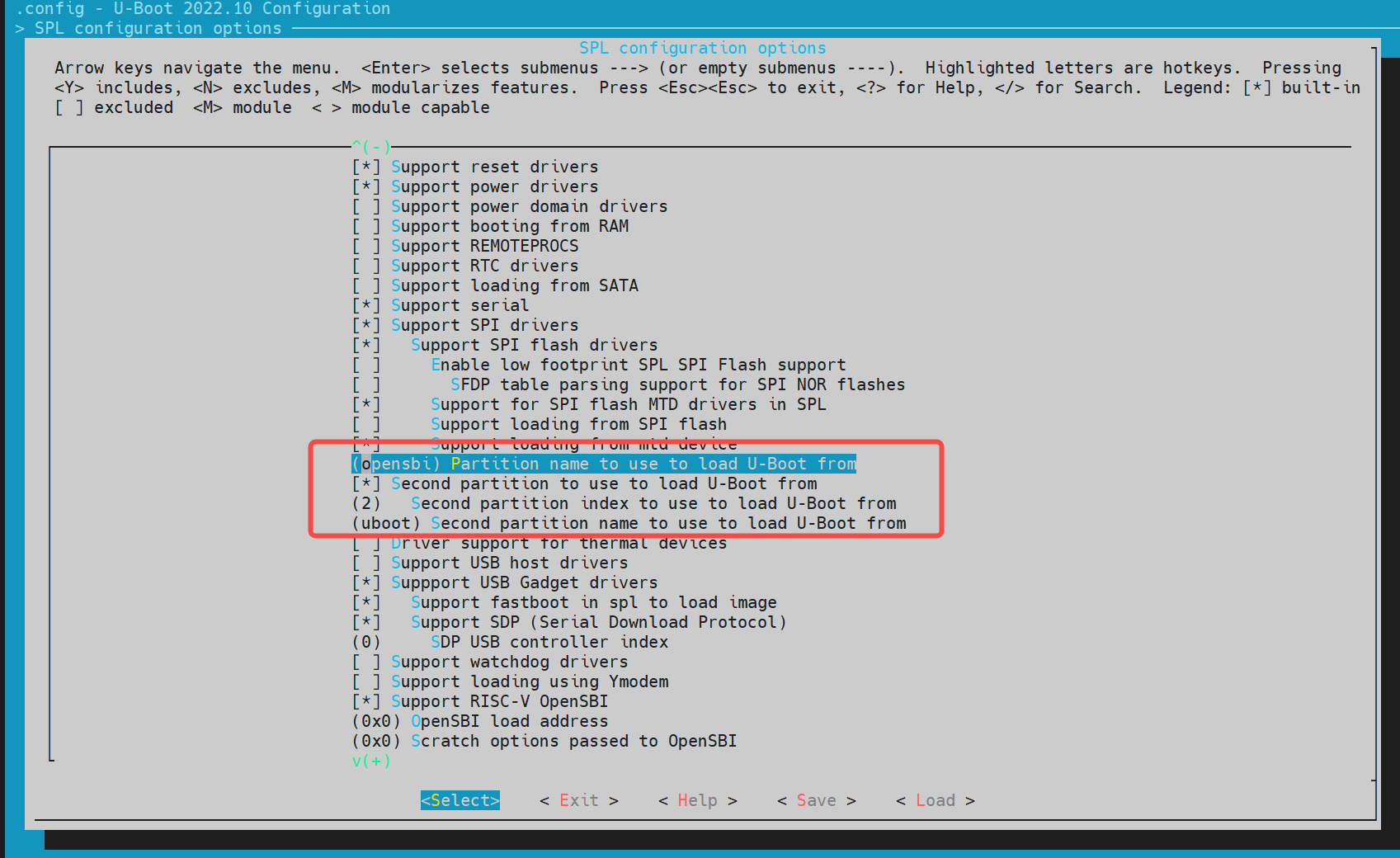 若支持 opensbi/uboot 单独加载启动的,需要开启 Support loading from mtd device。第一个 partition 必须是 opensbi,其次是 uboot。spl 会先根据分区表加载镜像,如果加载失败会根据分区号加载镜像。