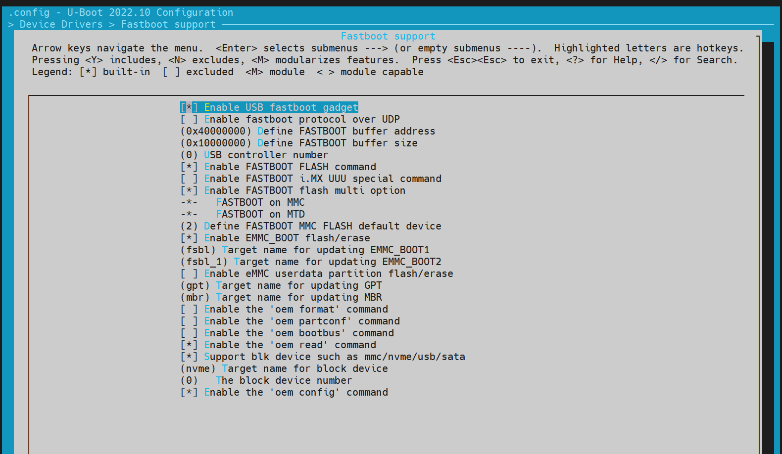 执行 make uboot_menuconfig,选择 Device Drivers --->Fastboot support