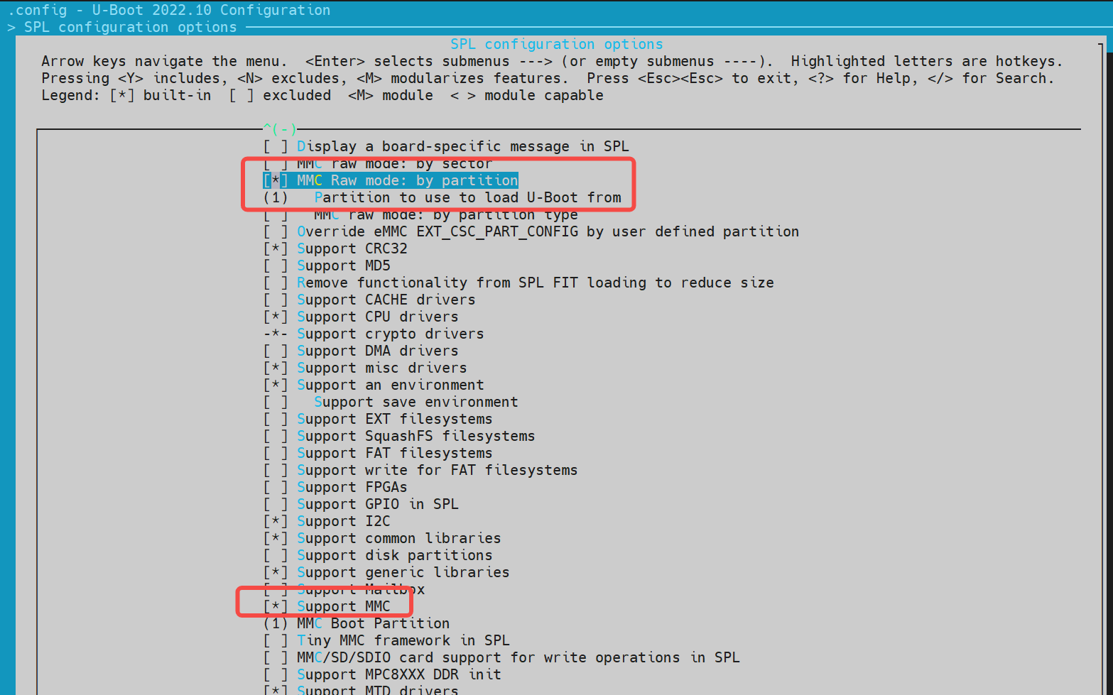 开启 MMC Raw mode: by partition,Support MMC(键盘输入 Y 表示是选中,N 表 示取消)