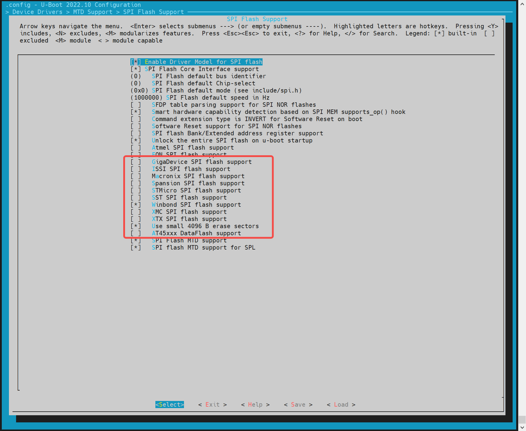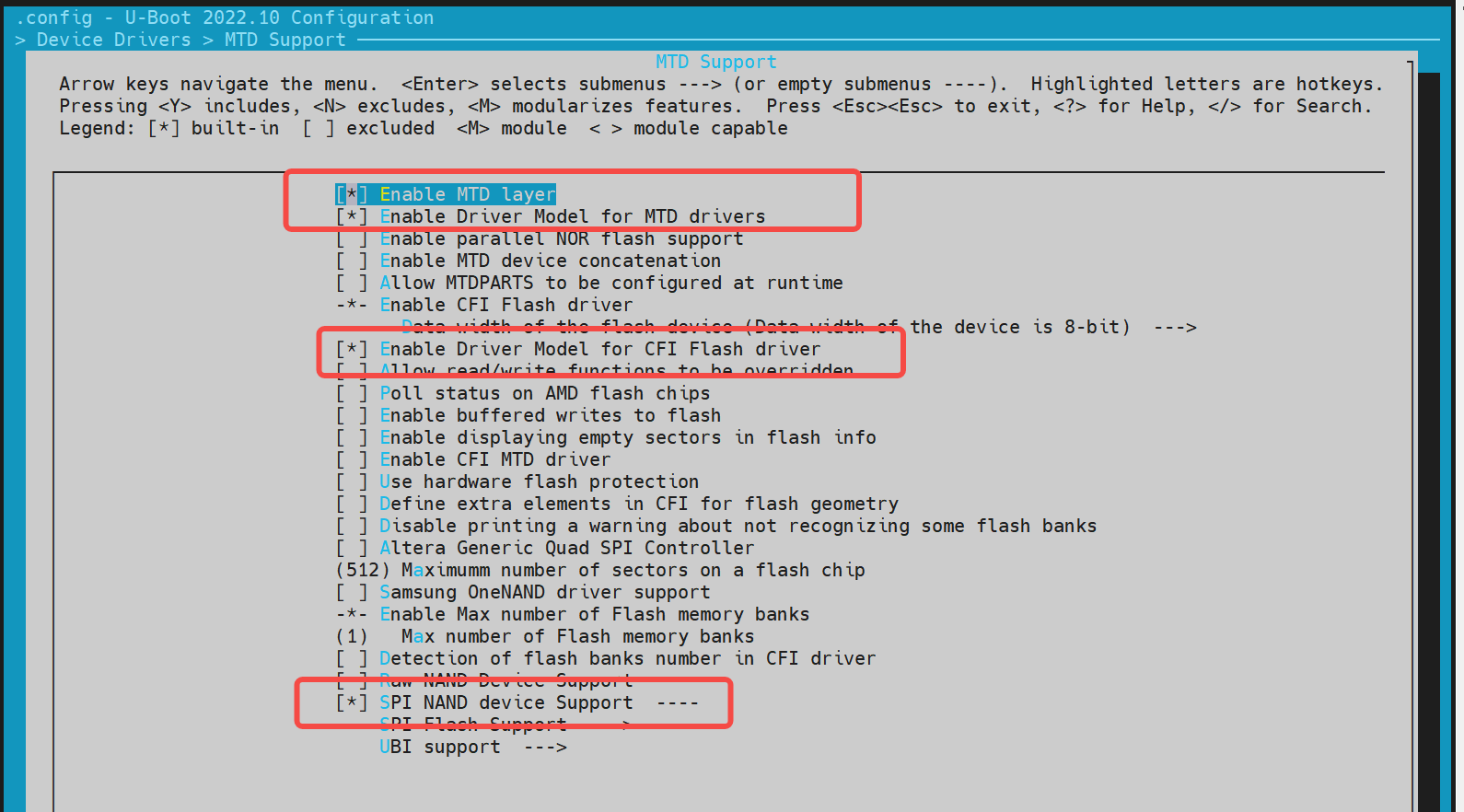 执行 make uboot_menuconfig,选择 Device Drivers--->MTD Support--->SPI Flash Support