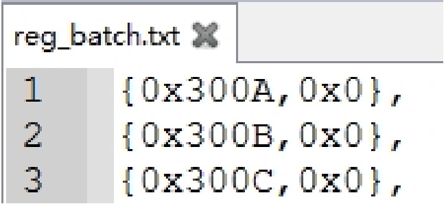 - Write 写寄存器 / Batch Write 文件导入批量写寄存器批量读写寄存器文件格式如下,