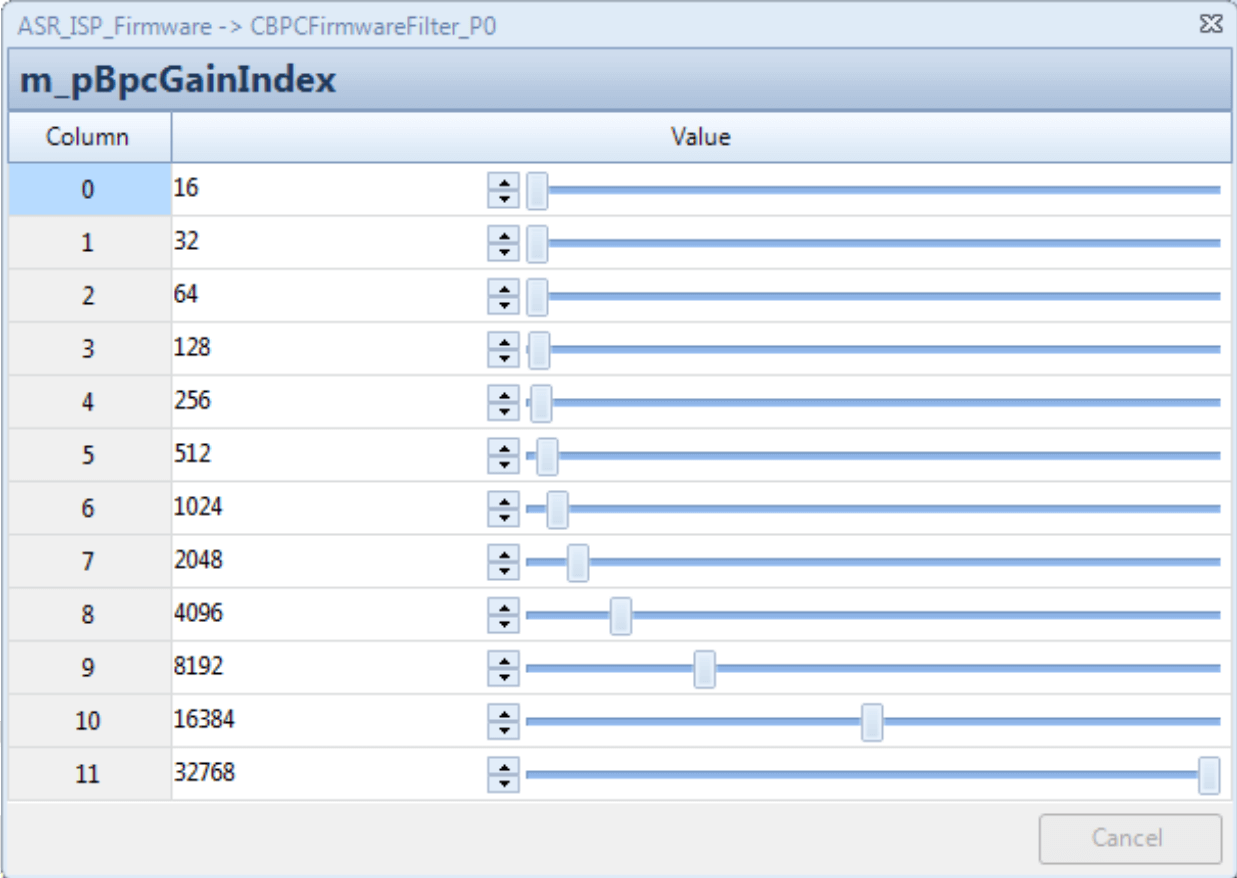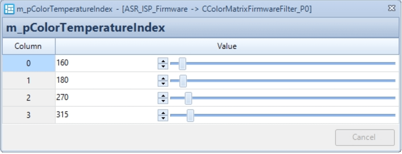 - 可编辑数组参数,如 m_pSubROIPermil,若为二维数组,可切换矩阵/行/列编辑模式